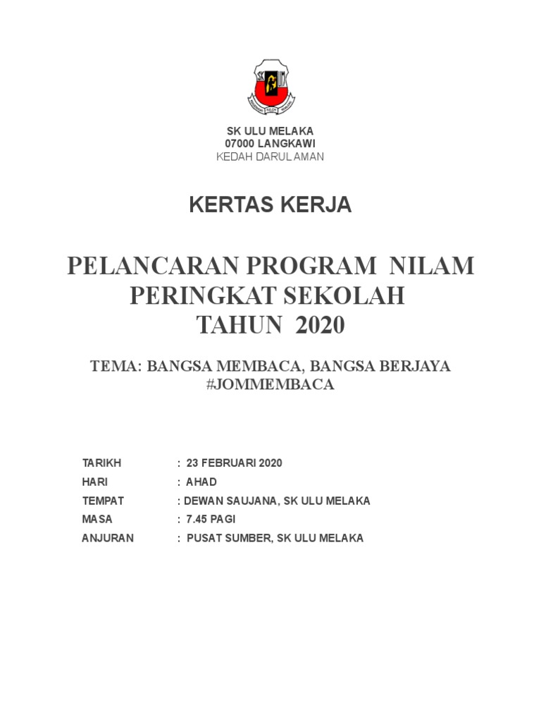 Kertas Kerja Program Nilam created by hani kampun on Jan. Tabiat membaca perlu disemai dalam diri setiap insan sejak di bangku sekolah lagi. 1 hari 1 buku PENDAHULUAN Membaca adalah asas kepada kecemerlangan seseorang.